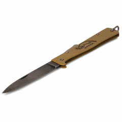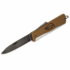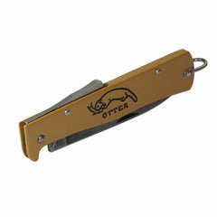 The MERCATOR “Sahara” knife impresses with its understated aesthetics and high functionality. The sand-colored, powder-coated box provides reliable protection against corrosion and wear and is subtly reminiscent of the Sahara Desert. The hand-painted OTTER logos add individual accents.