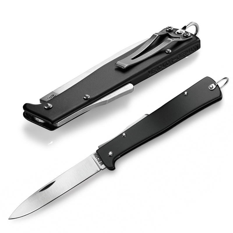 Simple, functional and robust. The original Mercator knife has been popular for over 100 years. Even though it wasn't designed to be an army knife, it quickly gained acceptance in Emperor William's army. This was also the time that created the name "Emperor William Knife". Today, it is used worldwide and distinguishes itself with its narrow, rugged design in everyday life. This model has an added stainless steel clip. Whether on belt, trouser pockets or backpack, thanks to the clip you quickly have our Mercator knife on your fingertips.