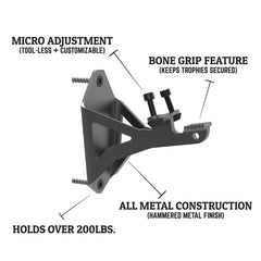 The HANG UP is a versatile, strong mounting bracket that will highlight any trophy in any room. Adjustable thumb screws provide a customizable display in a convenient DIY fashion. Our signature BoneGrip™ Feature ensures your trophy is rock-solid over 200 lbs!
