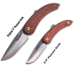 If you've got style, you've got the class to be a first-rate peasant. Peasants are proud. Who actually did anything in history? Royalty? Nobility? Leaders? No way. We peasants carried the can for centuries. We also carried Peasant Knives too. The B.W. Baker Peasant Knife, from the days when peasants had pockets, but no money to fill them. Just the knife. The B.W. Baker Peasant Knife is based on models used in Bohemia and Bavaria 3 - 400 years ago. It's easy to use, easy to carry and to open. But it's awfully hard to put down. You can open it one-handed. Hang it from your belt or whisk from your pocket by its handy tang. Beautifully simple, but crafted by Svord from the finest steel, hardened and tempered to a secret formula. All peasants know value when they see it. Beware of imitations!